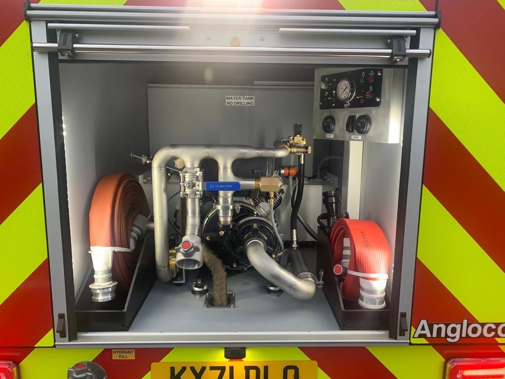 Hale HPX single stage fire fighting pump with stainless steel pipe work and fittings with dual controls (Rear locker and Inside Cab)